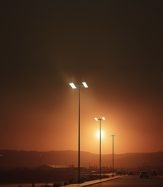 Harness the power of the sun to illuminate streets, pathways, and public spaces. Our solar streetlights use photovoltaic panels to capture sunlight during the day, converting it into electricity stored in batteries to power the lights at night. This renewable energy solution reduces dependence on fossil fuels and minimizes carbon footprints.